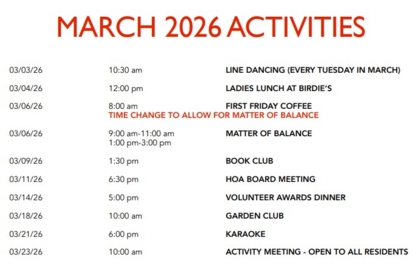Check out the March 2026 activities and regularly-scheduled weekly events: