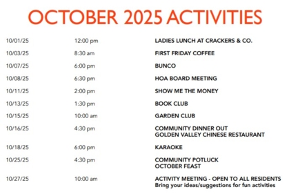 Check out the October 2025 activities and regularly-scheduled weekly events: